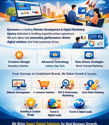 Our team combines creative design, advanced technology, and data-driven marketing strategies to deliver customized solutions tailored to each client’s unique business goals. From building high-performance websites to executing result-oriented digital campaigns, Bytswave focuses on quality, transparency, and long-term client relationships.